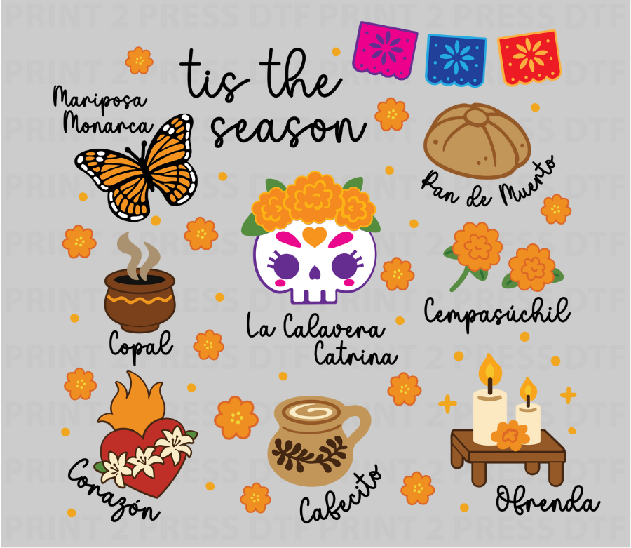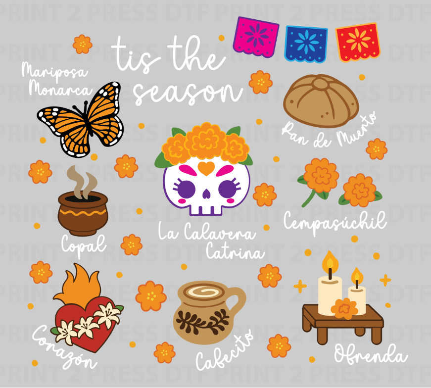 Our Día de los Muertos Collection features beautifully crafted DTF transfers inspired by the rich traditions of this sacred celebration. From sugar skulls and florals to heartfelt tributes, these designs are made to honor loved ones with color, culture, and love.