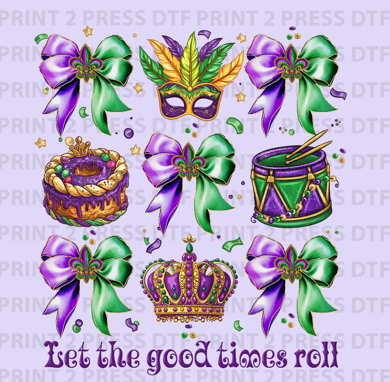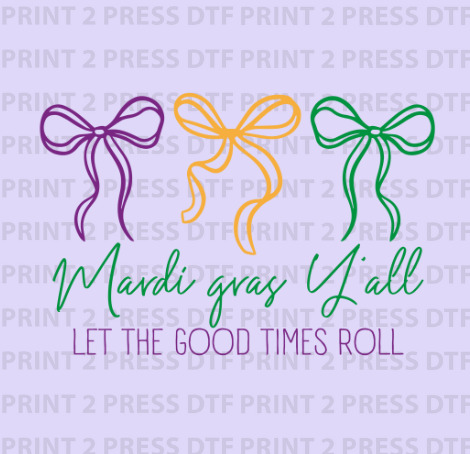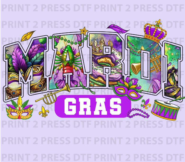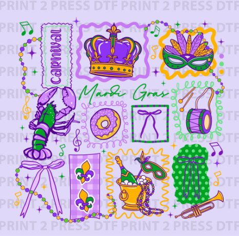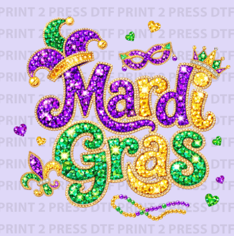 Our Mardi Gras Collection brings the beads, bold colors, and Bourbon Street spirit to your tees. From classic purple, green, and gold designs to fun sayings and festive graphics, these DTF transfers are made for celebrating in true Carnival style.